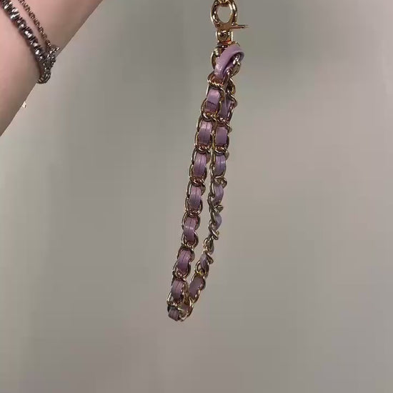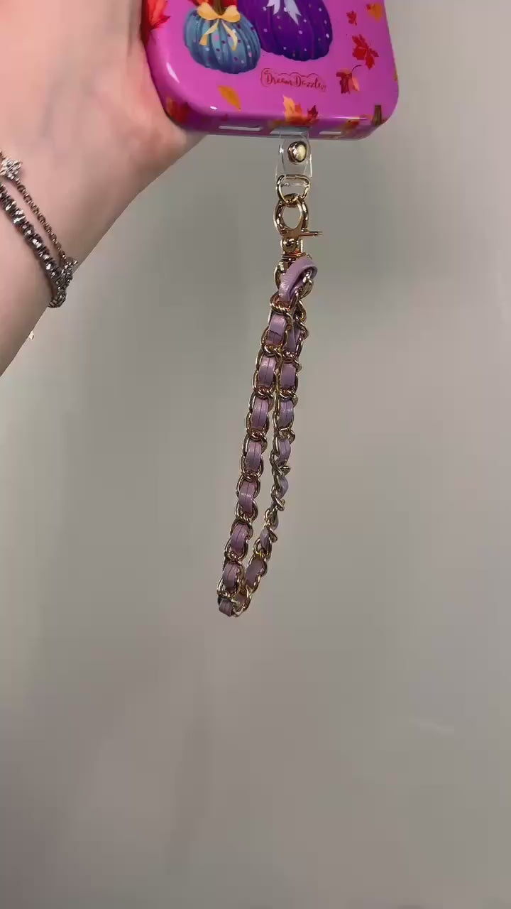 Lavender Gold Faux Leather Chain Wrist Phone Strap