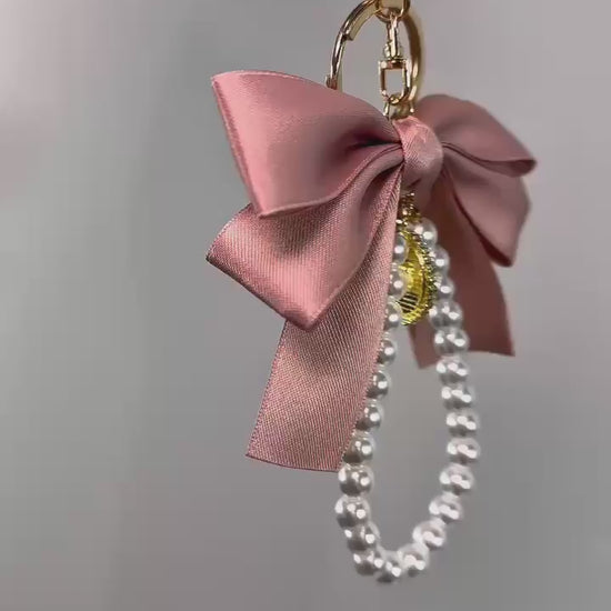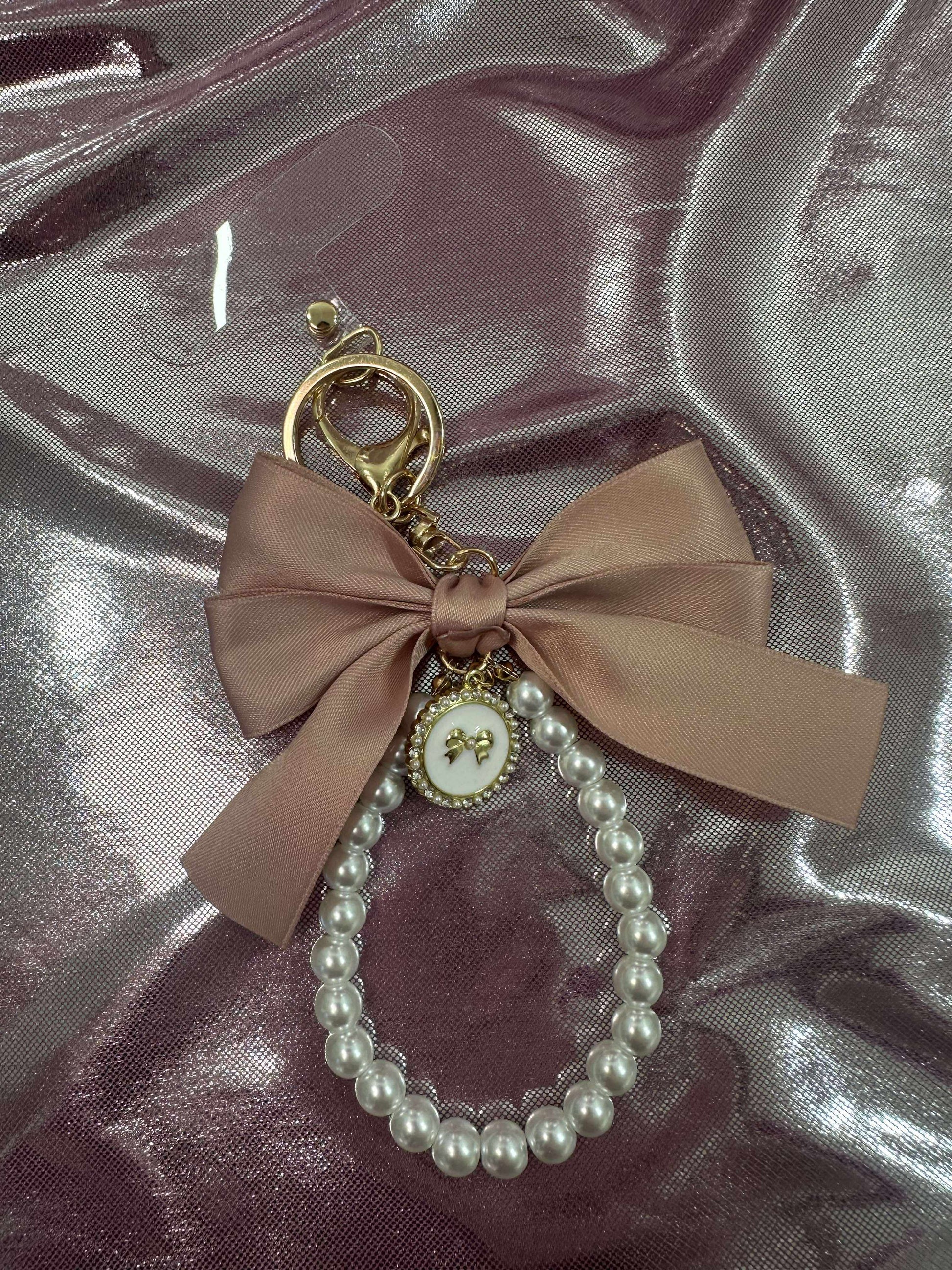 Vintage Pink Large Bow Pearl Finger Phone Strap