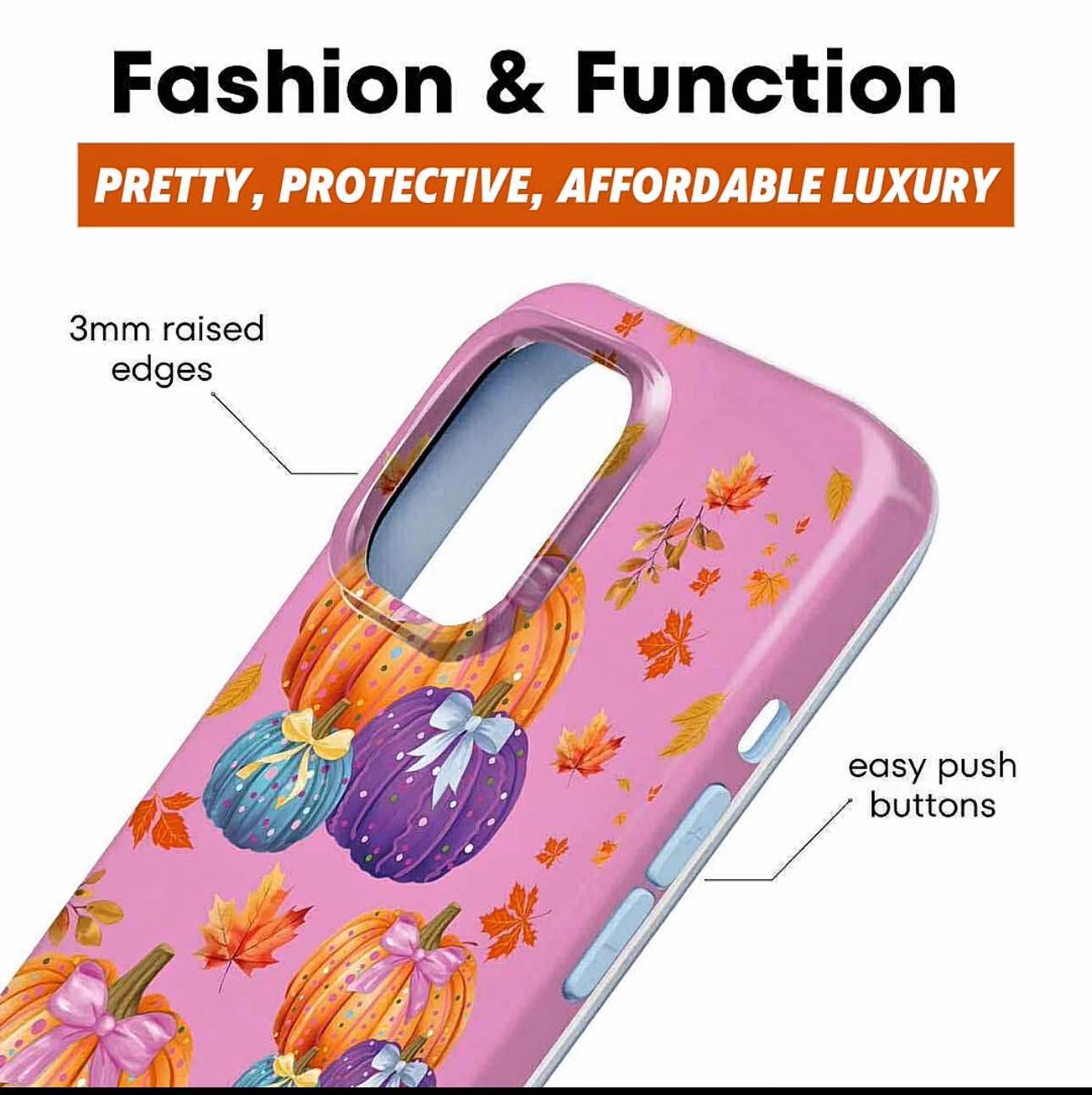 Inspired by painting pumpkins in autumn with family. This Dream Dazzle case will make your pumpkin fall aesthetic dreams come true! What makes it special: